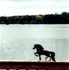 Then on Sunday we went to Chippewa Falls as Chris was in the Fall Art Show there and was attending the Artist's reception. I had my picture taken in front of the gallery which sits on top a huge hill that overlooks the Chippewa River. We stopped at the river and took my picture there. I was scared I'd fall in as it was a long way down but all was ok. There is a dam and an old iron bridge that was neat to see. Chris told me about how when the German people first started moving to the area they would write home to family in the old country and tell them of the Chippewa River, how it ran with beer! Now, it doesn't really run with beer but because of the iron content in the rocks and soil, the clear waters appear golden and add a little bit of froth and what have you got? A Leinenkugel! Well, almost...I did get to see the real Leiney brewery too but because I am under age I wasn't allowed any. That is ok, I prefer water anyway! Oh, I also got to drink out of a 'bubbler'! LOL. These Wisconsinites sure are strange...in a funny way!