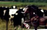 One thing I noticed about here is there is a lot of dirt roads, not many houses and when there is one it is usually a farm. It is real rural here with black and white cows and big red barns everywhere! Who knew there were so many black and white cows! Oh, they come in other colors also like brown and white and even a blue roan color. One strange one I saw was a brindle with wild white spots. There also is some really hairy ones that look like wooley mammoths that had a tendency to come visit. They were called Highland cattle and were to be at their home a few miles away. I guess they liked it here better! I was looking for some badgers but never saw one. I don't know why they call it the Badger State but I sure do know why Wisconsin is called America's Dairyland!